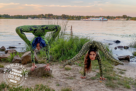 Today there is a completely knotted video update on zlata.de. On a hot summer evening, Victoria and Ruslana stretched each other and did pair exercises on the river beach.